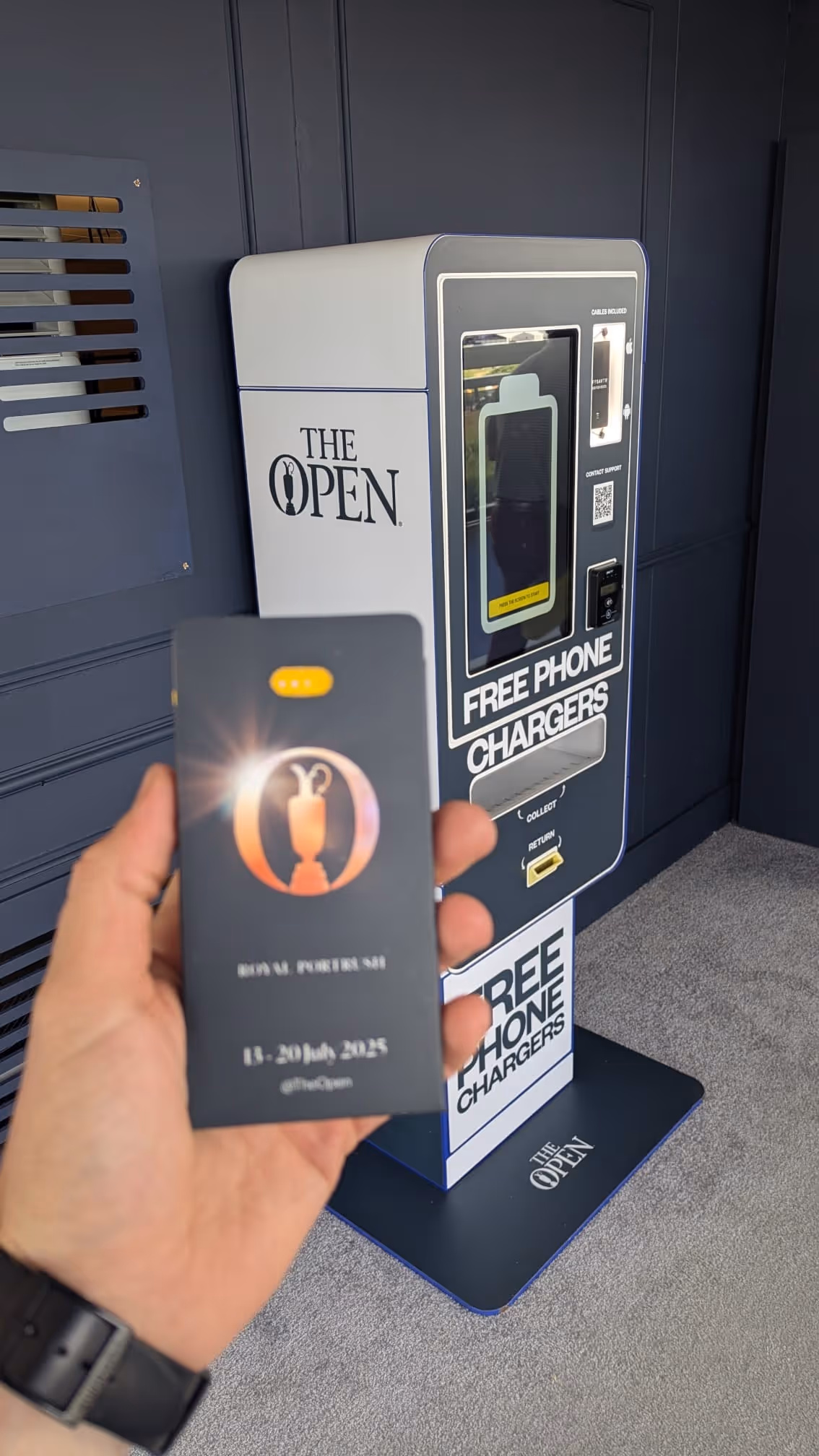 The Open takes place across large outdoor sites with long walking distances and extended dwell times. Fans depend heavily on their phones throughout the day, yet access to traditional charging points is limited. Any solution needed to operate reliably from gates opening to close, scale with high footfall, and remain simple and accessible for all spectators, without queues, cost, or disruption to the event experience.